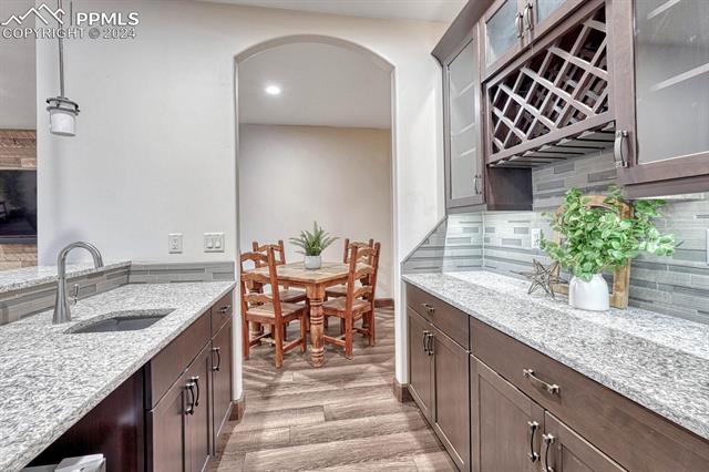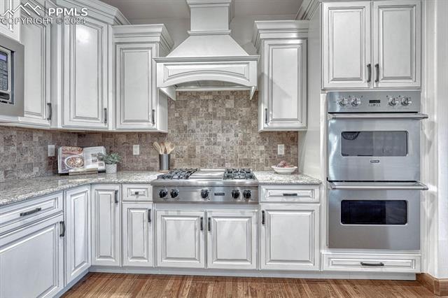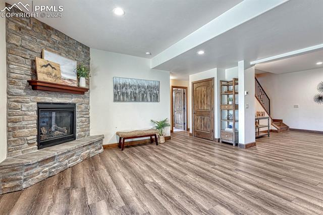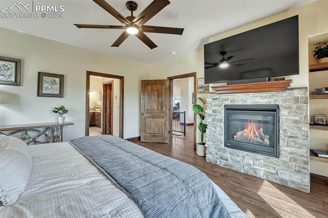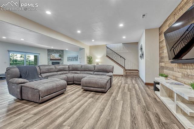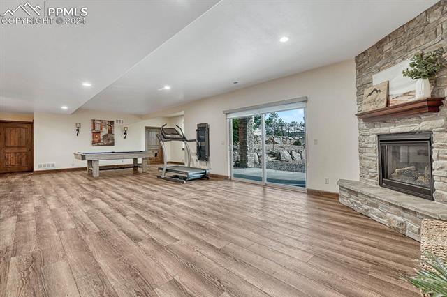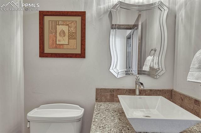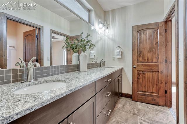 The primary suite dazzles with a fireplace, deck + views, and an indulgent ensuite 5-piece bath with heated floors, freestanding tub, and a rejuvenating steam shower. The main level also features a spacious mud and laundry room, along with large Jack & Jill bedrooms with an ensuite 5-piece bath. Head downstairs to the spacious and stylish walk-out basement including a wet bar, fireplace, billiards, TONOL gym, large storage area and 2 additional bedrooms with an ensuite bath ideal for hosting guests. Escape to the xeriscape yard with all new rock, astroturf, accent lighting and an extravagant in-deck spa jacuzzi offering the perfect setting for outdoor relaxation and entertainment.