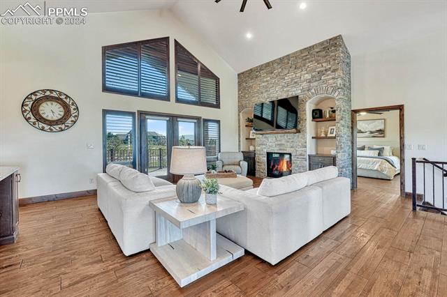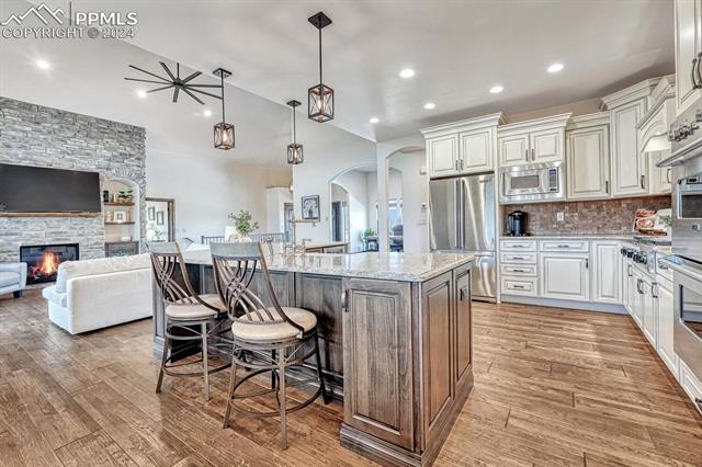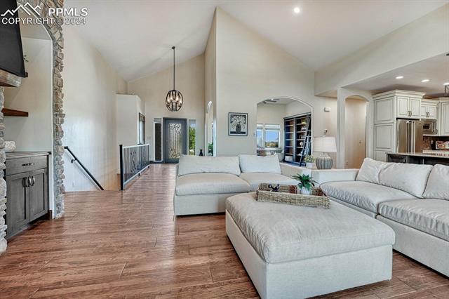 Welcome to this mountain, contemporary masterpiece nestled in the highly sought-after Kings Deer community! Located within walking distance to the prestigious Kings Deer Golf Course, with breathtaking 180-degree views of Pikes Peak, Black Forest, and the Front Range, prepare to embrace the epitome of Colorado living from the comfort of your own home.