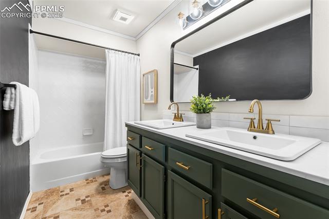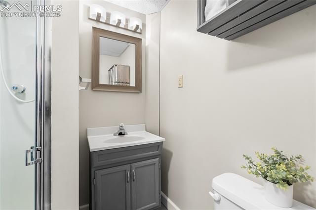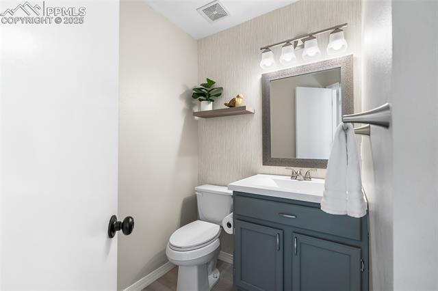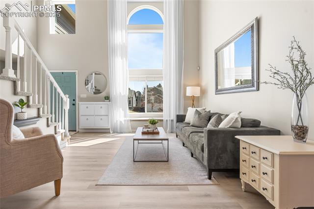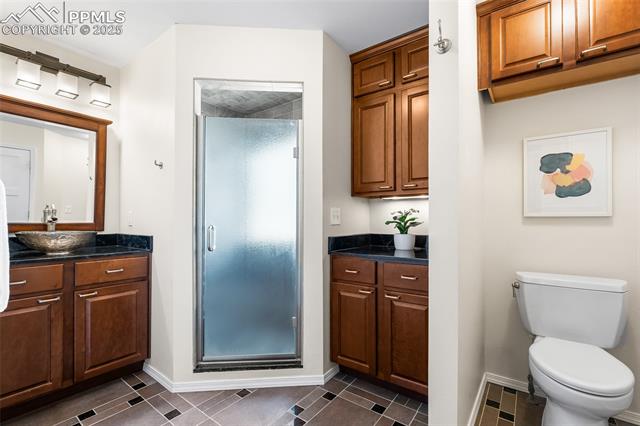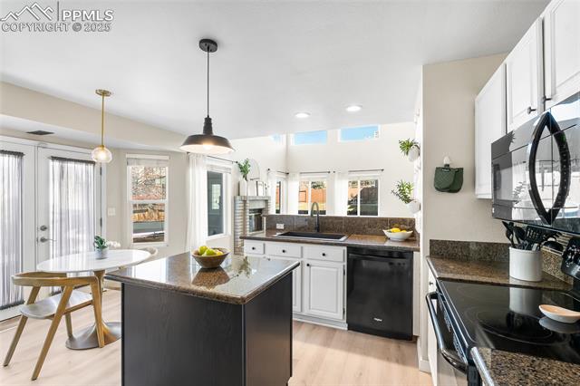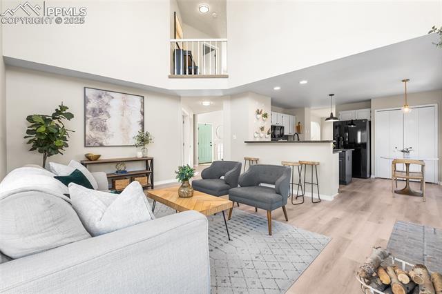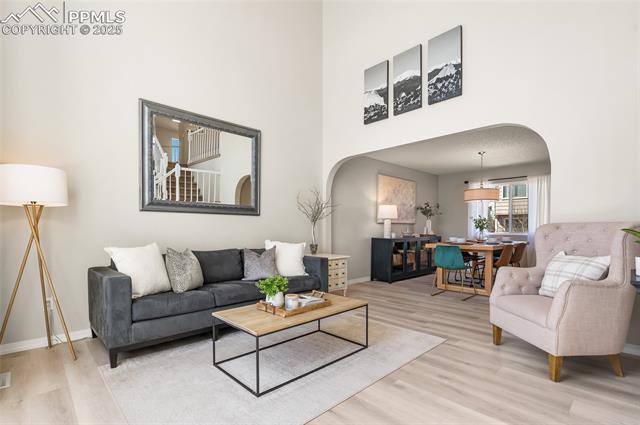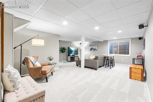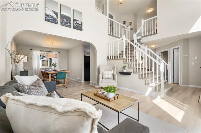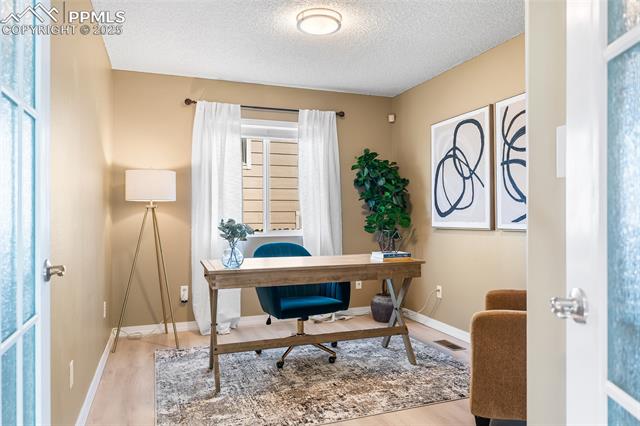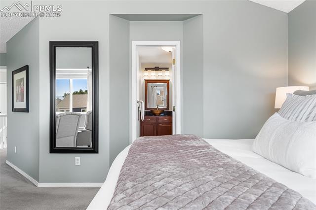 Welcome to this stunning 5-bedroom, 4-bath home with a main-level office, nestled in the highly sought-after Pinewoods neighborhood & the award-winning D20 school district. From the moment you arrive, you'll appreciate the charm, elegance, and thoughtful updates throughout, including beautifully updated flooring on the main level, upgraded interior and exterior paint, modern lighting, and improvements that enhance both style and function. The kitchen features granite countertops, an island, all appliances, a pantry, and abundant cabinetry. Formal living & dining rooms offer elegant spaces to host, while the inviting family room impresses with soaring vaulted ceilings, expansive windows that flood the space with natural light, and a beautiful fireplace equipped for a gas insert. The main-level office is perfect for working from home or can easily serve as a sixth bedroom for added flexibility. Upstairs, the spacious primary suite boasts lovely Pikes Peak views, a walk-in closet, and a luxurious ensuite bath, complemented by two additional bedrooms and an updated full bath. The fully finished basement offers a private and versatile retreat--ideal for multi-generational living or guests--with a second family room, two additional bedrooms, a 3/4 bath, and generous laundry & storage space. Step outside to enjoy the best of Colorado living in a fully fenced, professionally xeriscaped backyard featuring a stunning tiered patio, built-in gas fireplace, and raised garden beds--perfect for outdoor entertaining or peaceful relaxation. Additional highlights include central A/C, a two-car garage with built-in storage, 50-yr composite roof shingles, fiber optic internet/cable and no HOA. Tucked away in a quiet, established neighborhood within walking distance to schools and just minutes from Pine Creek Golf Course, the Shops at Briargate, Interquest dining and entertainment, and the Air Force Academy--with easy access to I-25--beautifully maintained & move-in-ready!