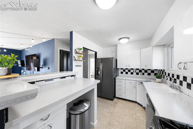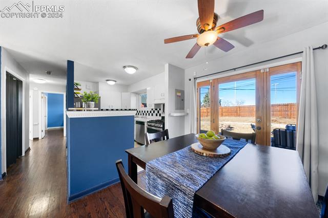Nestled in the desirable D11 school district, this delightful 2-bed, 1-bath home offers an enviable location within walking distance of the University of Colorado Springs. Conveniently situated near the thriving University Village shopping area and with easy access to I-25, military bases, parks, and entertainment, this property combines prime location with comfort. The residence features an inviting living room illuminated by a captivating wall of windows, seamlessly flowing into a dining area with direct access to a fenced backyard--a haven for enjoying Colorado's outdoor beauty in privacy. The well-appointed kitchen includes stainless steel appliances, a gas range, and ample counter and storage space. Additionally, the unfinished basement, complete with a separate owner's access entry, offers great potential. Enhanced by updated wood flooring, fresh interior paint, newer windows, and even a glimpse of the mountains, this home also includes solar panels that are fully paid for to help reduce utility bills and a radon system for peace of mind. Ready for your personal touch, this charming property awaits its new owner to make it their own.