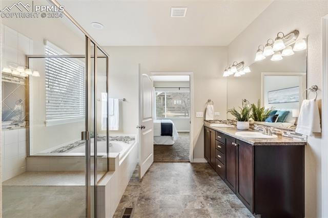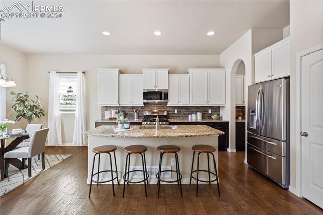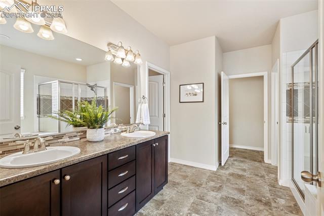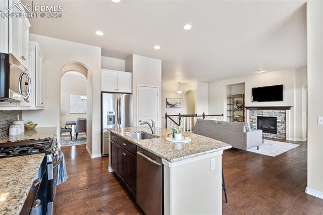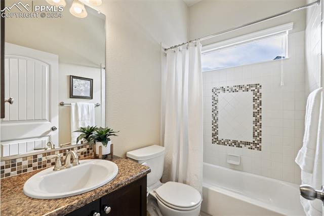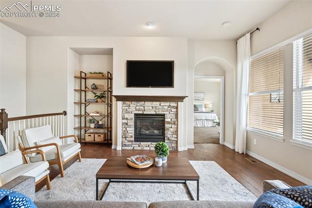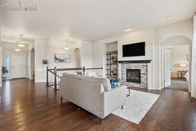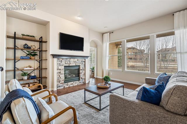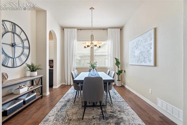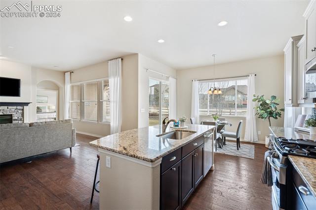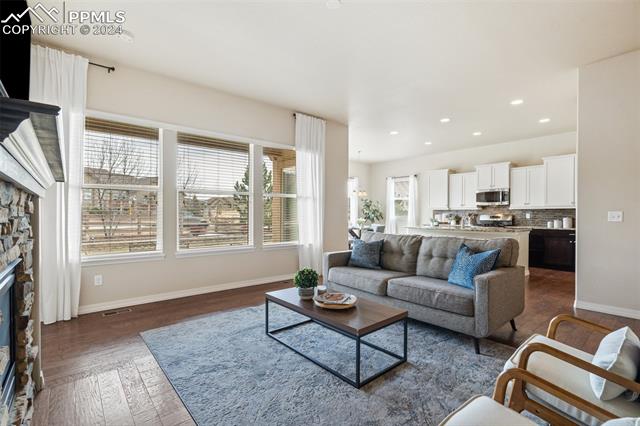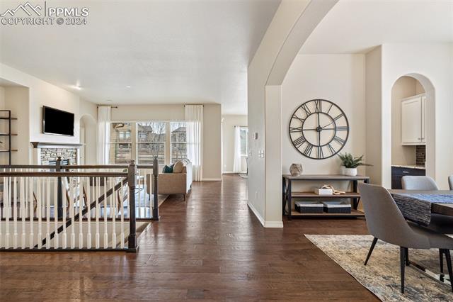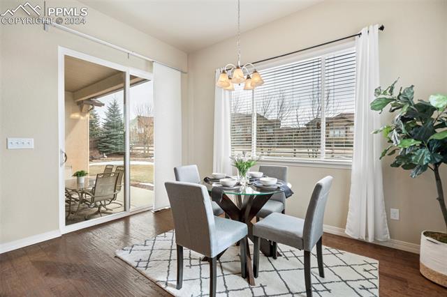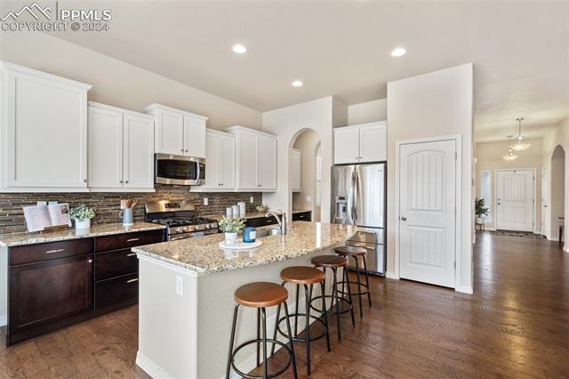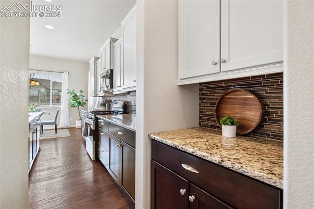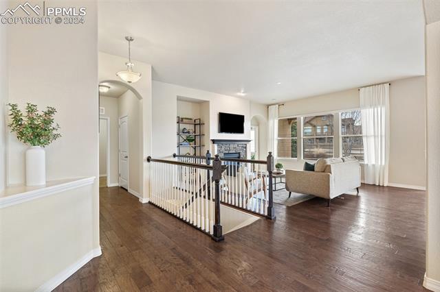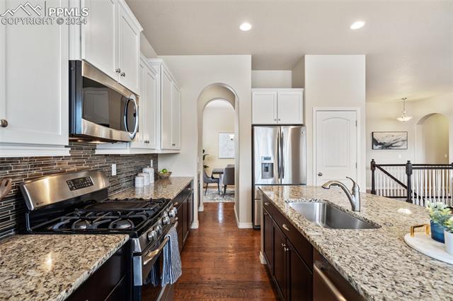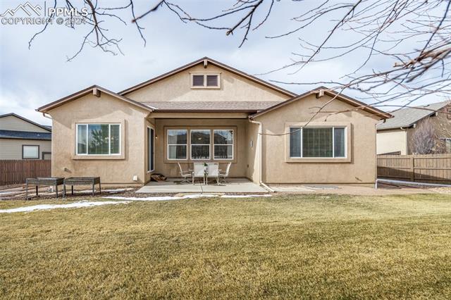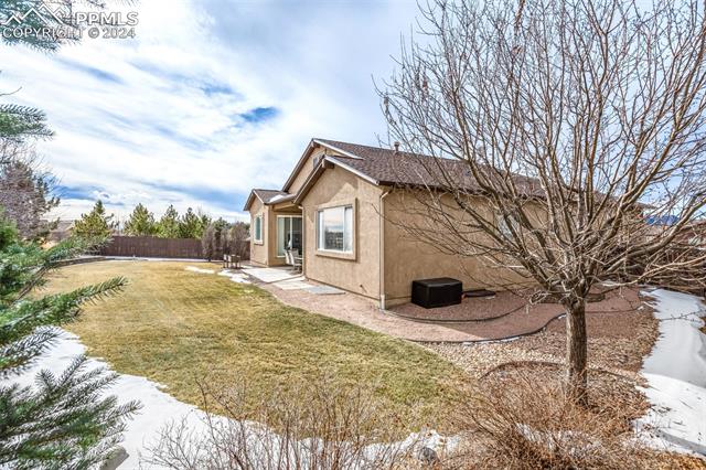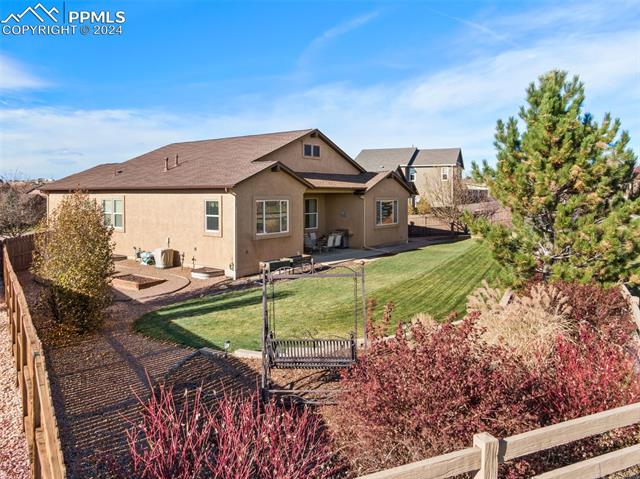 Discover the allure of this stunning Paradise model by Classic Homes in the sought-after community of Indigo Ranch at Stetson Ridge! Situated on a peaceful cul-de-sac, this spacious home offers 4 bedrooms, 3 bathrooms, and a 3-car garage. Upon entering, you'll notice beautiful hickory engineered wood floors that flow through the open layout. The living room features a cozy gas fireplace with a wood mantle and a wall of windows that fill the space with natural light. The expansive dining room sets the stage for memorable gatherings. The kitchen is a chef's dream, boasting of granite countertops, a large island, stainless steel appliances, gas range, pull-out shelving, pantry, and a spacious breakfast nook with sliders opening to the covered back patio. Step outside to a fully fenced backyard, beautifully landscaped with mature trees and plants, creating a serene outdoor retreat to enjoy Colorado's natural beauty, including raised garden beds for your green thumb aspirations. The generous primary retreat offers a peaceful oasis, complete with a 5-piece primary bathroom, a large walk-in closet, and convenient access to the main floor laundry room with a utility sink and storage. Additionally, the main level includes a secondary bedroom and a full bathroom, providing flexibility and convenience. The finished basement presents a sizable family room, two large bedrooms, a full bathroom, and a substantial storage room that can easily be converted into a fifth bedroom. The home boasts several upgrades, including a finished and insulated garage, class 4 roof for durability, and air conditioning for comfort. Conveniently located near the Powers corridor, this property offers easy access to D49 schools, parks, military bases, shopping, and entertainment, making it an ideal place to call home. Don't miss the opportunity to make this exceptional property your own and embrace the best of Colorado Springs living!