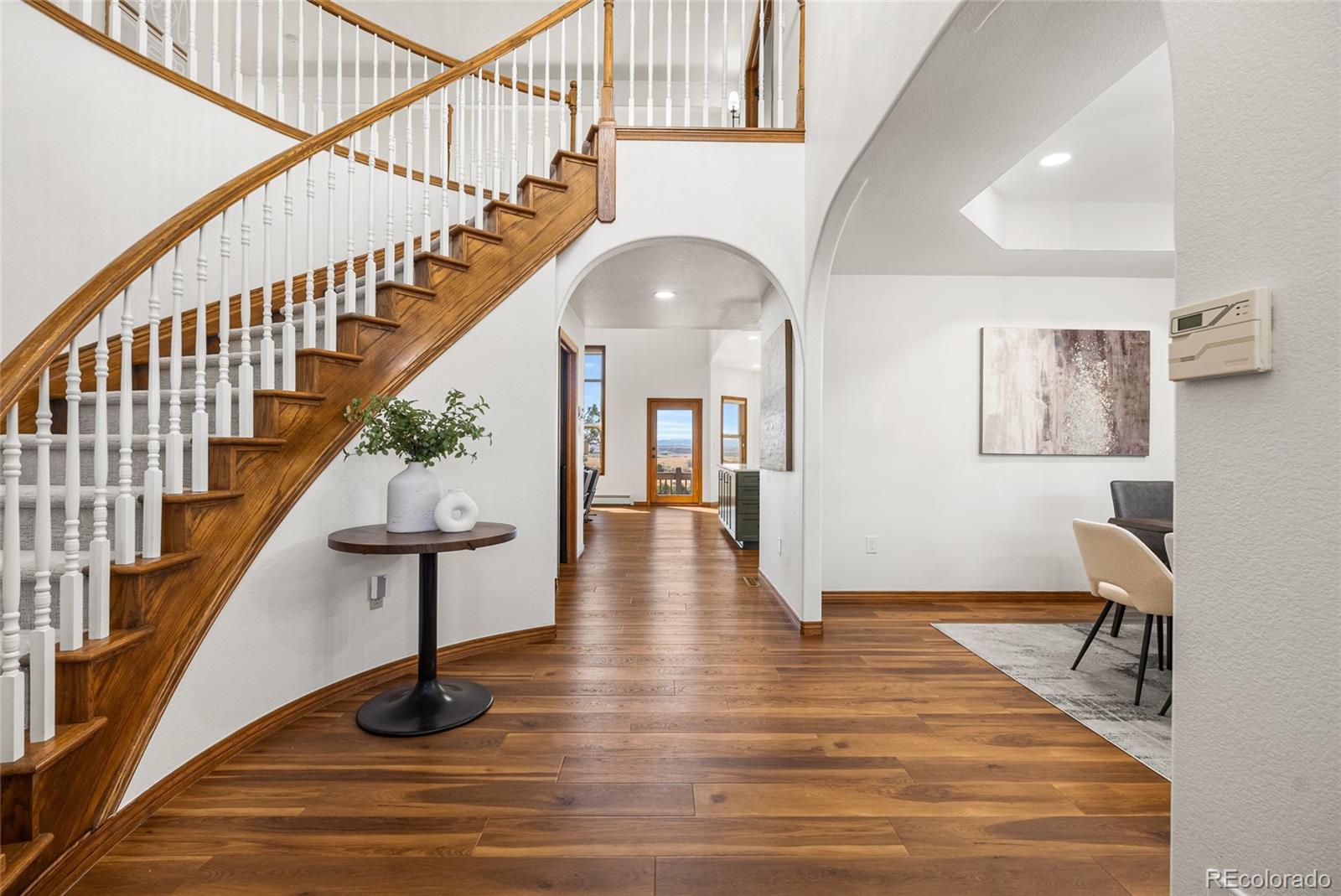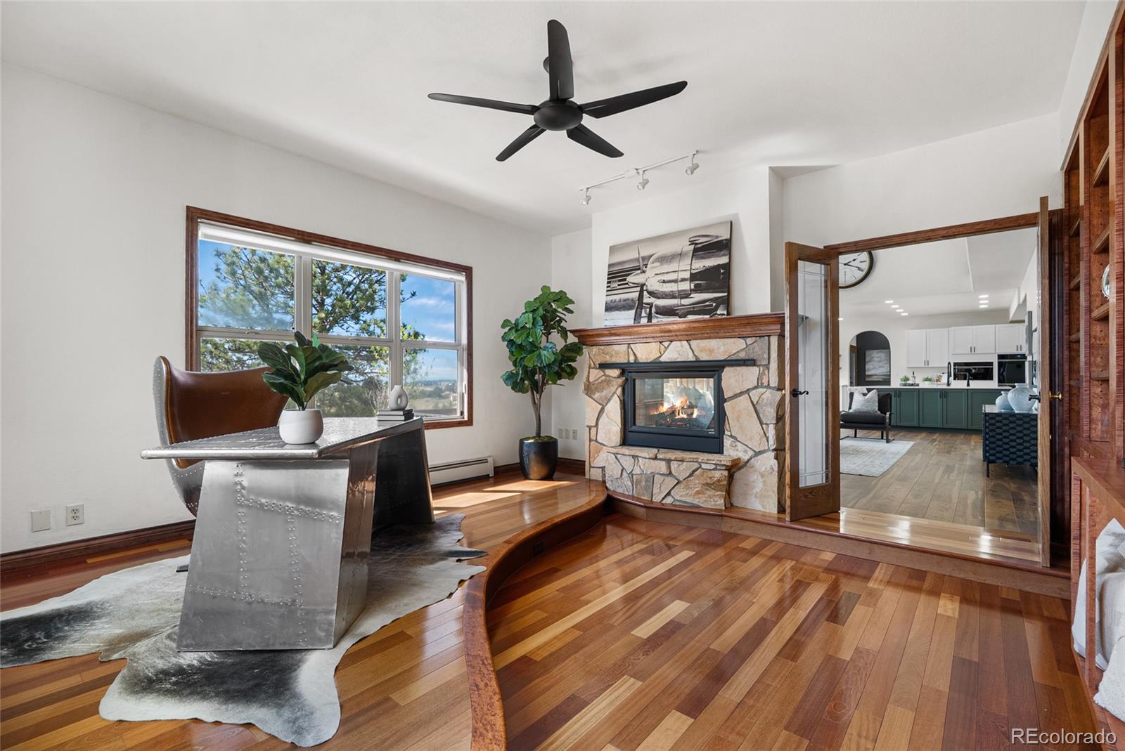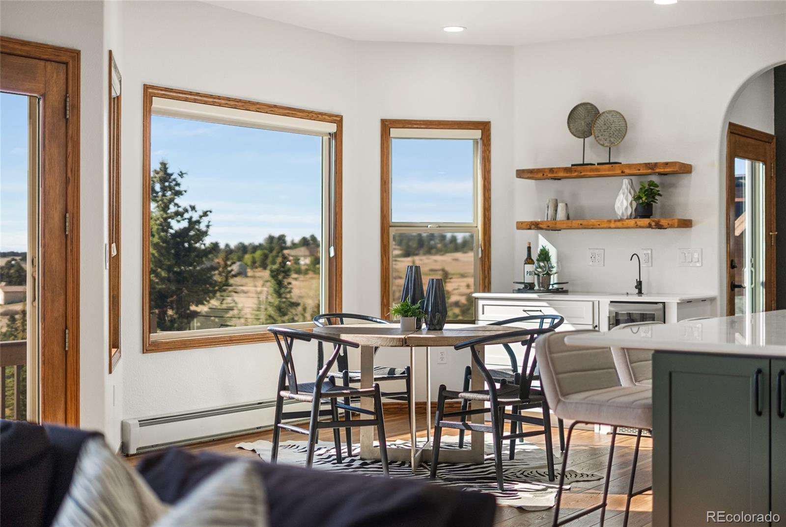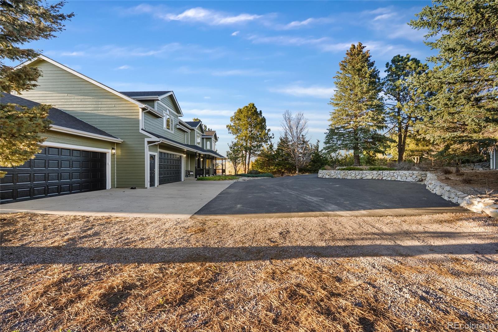 Nestled on 13.91 acres in the coveted Sterling Tree Farm community of Parker, this extraordinary custom estate offers a rare blend of privacy, space, and truly breathtaking Rocky Mountain views--stretching from Pikes Peak to Longs Peak. Set on one of the largest lots in the neighborhood and backing to open space, the property provides a serene, secluded setting with room to roam and enjoy Colorado living at its finest. This home features 5 bedrooms and 5 bathrooms, including two primary suites--one on the main level and one upstairs--each with en suite baths and walk-in closets. The thoughtfully designed floor plan also includes a main-floor office and a private fifth bedroom above the garage with its own entrance - ideal for guests, multigenerational living, or in-law quarters. The recently remodeled kitchen is a true showstopper, showcasing brand-new custom cabinetry, top-of-the-line Sub-Zero and Wolf appliances, an induction cooktop, double ovens, a wet bar. Car enthusiasts and hobbyists will appreciate the oversized 4-car attached garage as well as the impressive 2,200-square-foot outbuilding, offering space for up to 10 additional vehicles including an RV garage door, a half bath, and endless possibilities for storage, toys or workshop. Zoned for two horses and includes water rights! Additional highlights include a walk-out unfinished basement ready for customization, a brand-new hail-resistant roof, new luxury plank flooring, new carpet, fresh interior paint, remodeled bath, a new asphalt driveway, updated water filtration system, all-new siding, rebuilt boiler system, and a newly replaced sewer line. Enjoy low HOA dues and easy access to nearby riding and hiking trails, while remaining conveniently close to the Colorado Horse Park, Centennial Airport, DIA, I-25, and an array of dining and shopping options. With stunning mountain views from nearly every window, this is a truly special opportunity to own a one-of-a-kind Colorado retreat.