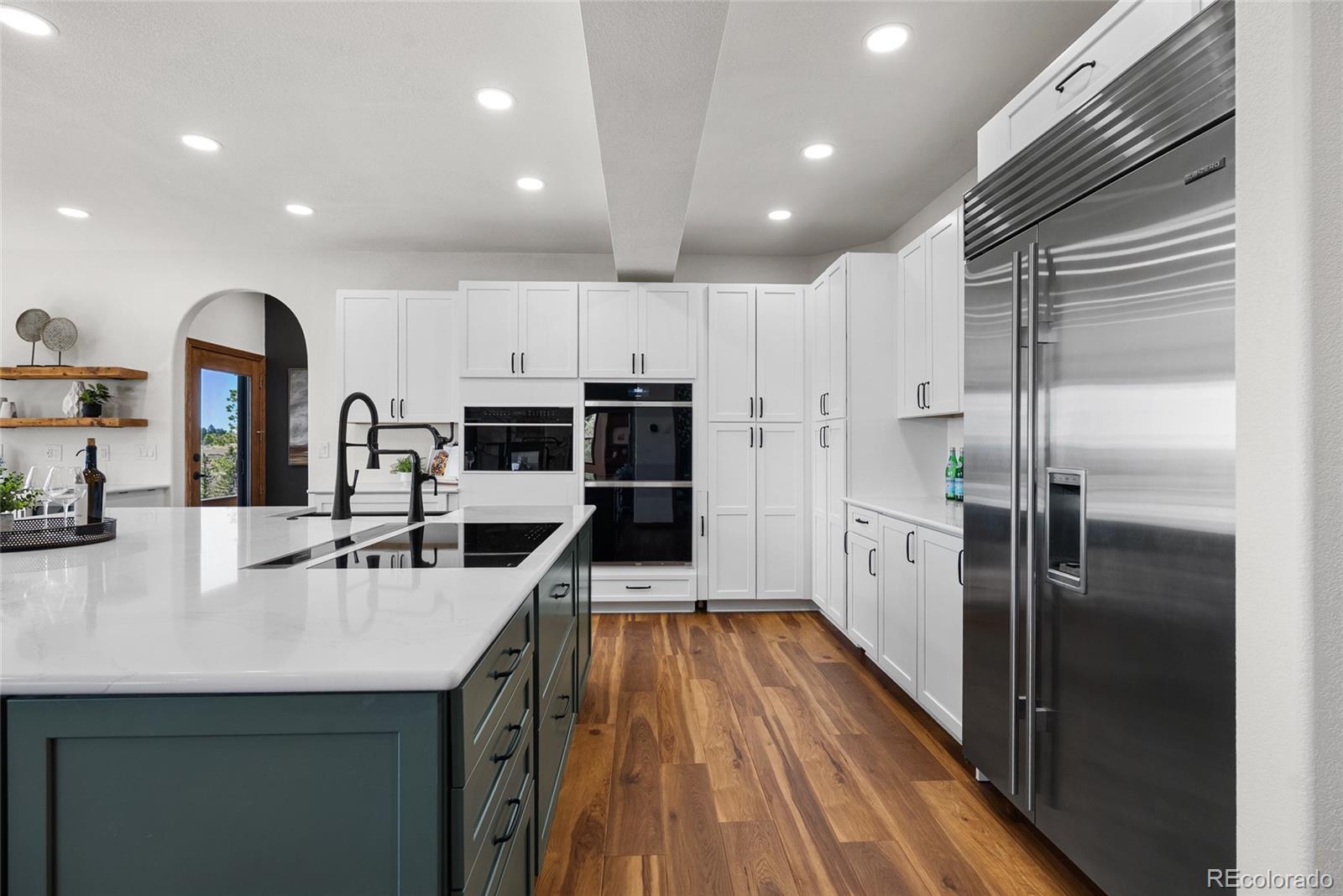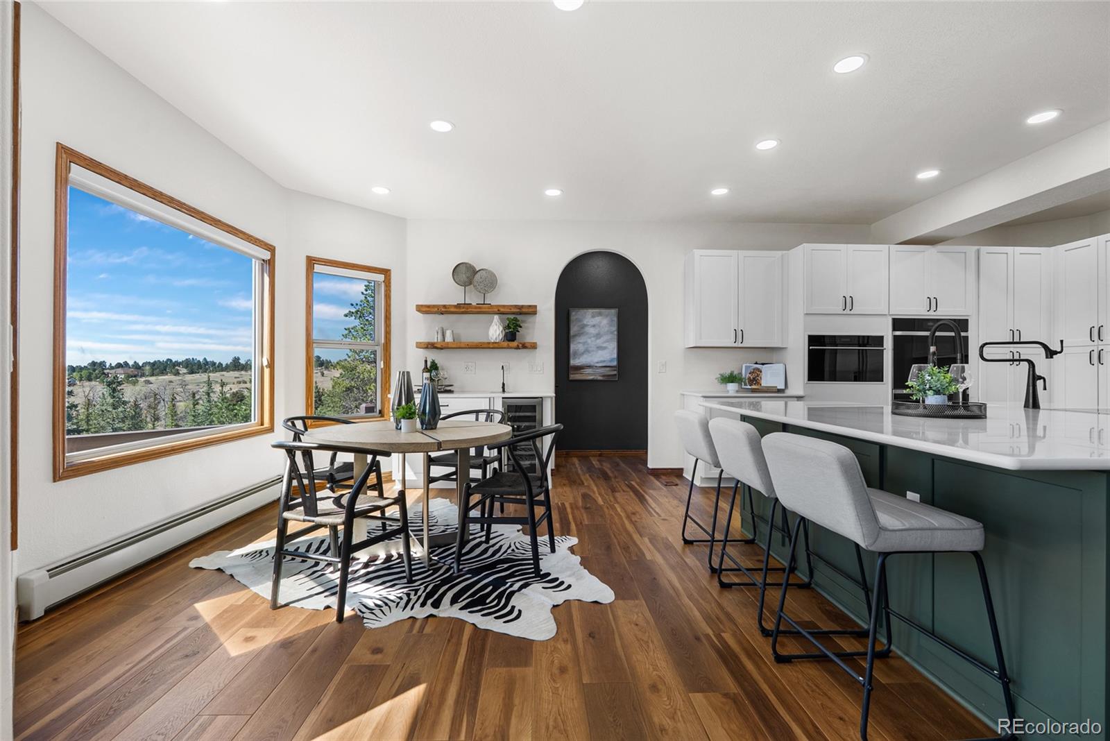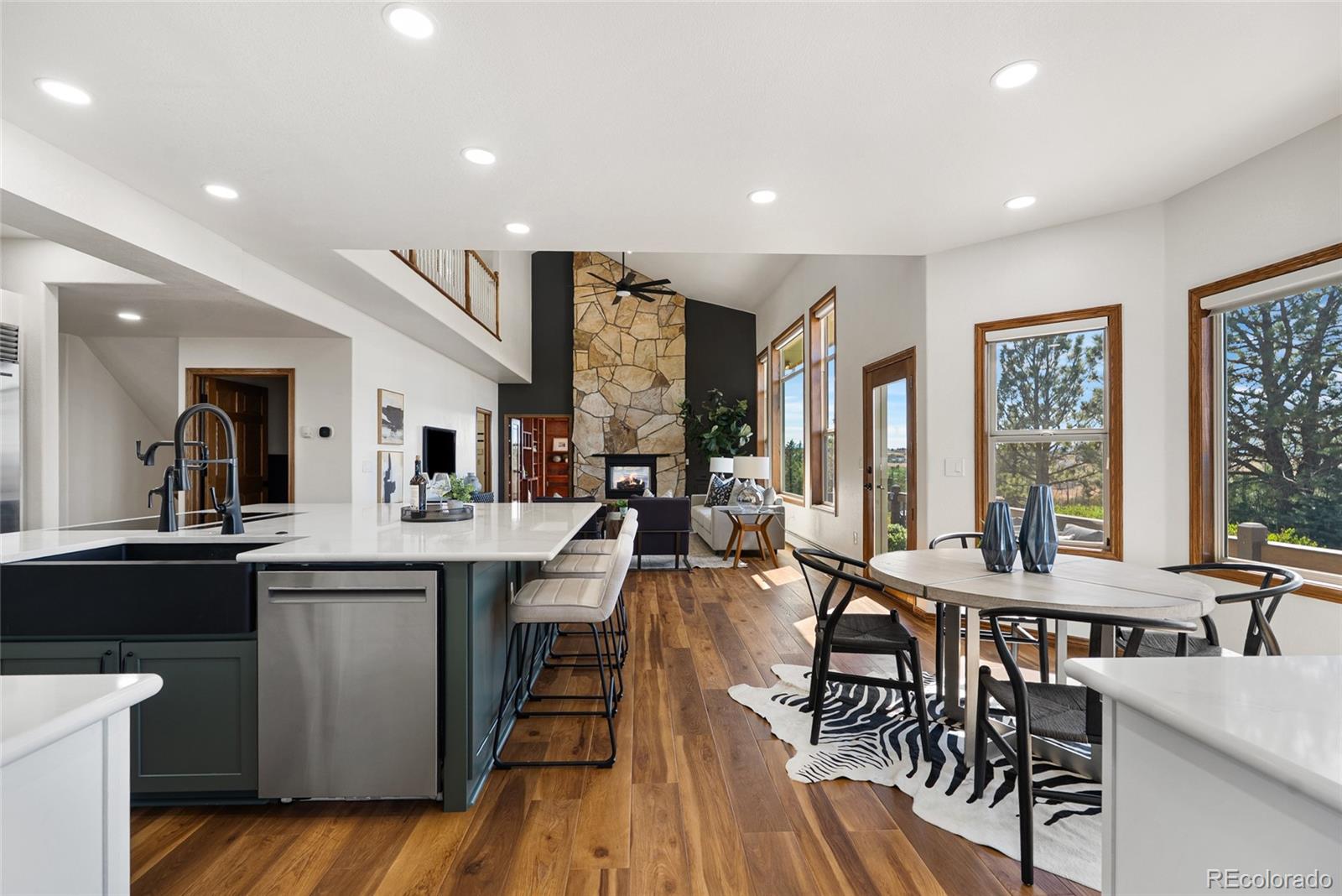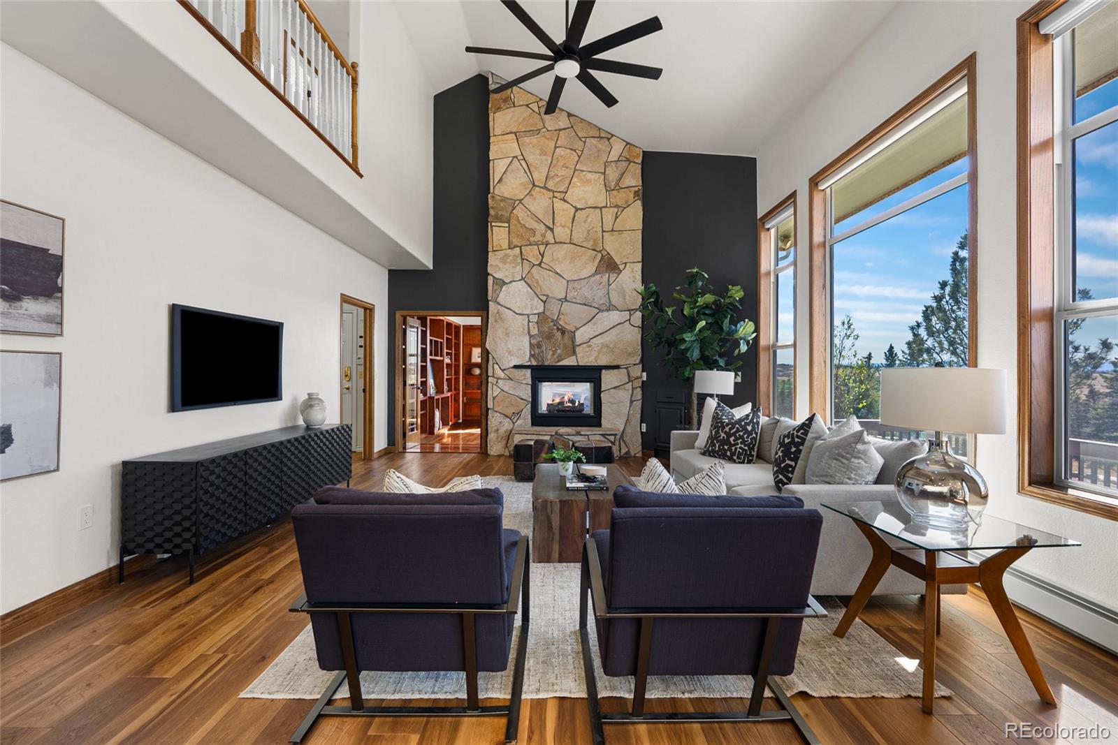Nestled on 13.91 acres in the coveted Sterling Tree Farm community of Parker, this extraordinary custom estate offers a rare blend of privacy, space, and truly breathtaking Rocky Mountain views--stretching from Pikes Peak to Longs Peak. Set on one of the largest lots in the neighborhood and backing to open space, the property provides a serene, secluded setting with room to roam and enjoy Colorado living at its finest. This home features 5 bedrooms and 5 bathrooms, including two primary suites--one on the main level and one upstairs--each with en suite baths and walk-in closets. The thoughtfully designed floor plan also includes a main-floor office and a private fifth bedroom above the garage with its own entrance - ideal for guests, multigenerational living, or in-law quarters. The recently remodeled kitchen is a true showstopper, showcasing brand-new custom cabinetry, top-of-the-line Sub-Zero and Wolf appliances, an induction cooktop, double ovens, a wet bar. Car enthusiasts and hobbyists will appreciate the oversized 4-car attached garage as well as the impressive 2,200-square-foot outbuilding, offering space for up to 10 additional vehicles including an RV garage door, a half bath, and endless possibilities for storage, toys or workshop. Zoned for two horses and includes water rights! Additional highlights include a walk-out unfinished basement ready for customization, a brand-new hail-resistant roof, new luxury plank flooring, new carpet, fresh interior paint, remodeled bath, a new asphalt driveway, updated water filtration system, all-new siding, rebuilt boiler system, and a newly replaced sewer line. Enjoy low HOA dues and easy access to nearby riding and hiking trails, while remaining conveniently close to the Colorado Horse Park, Centennial Airport, DIA, I-25, and an array of dining and shopping options. With stunning mountain views from nearly every window, this is a truly special opportunity to own a one-of-a-kind Colorado retreat.