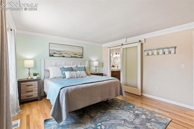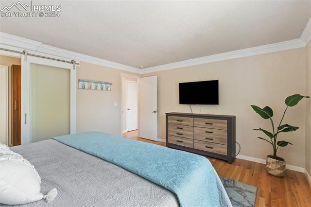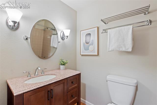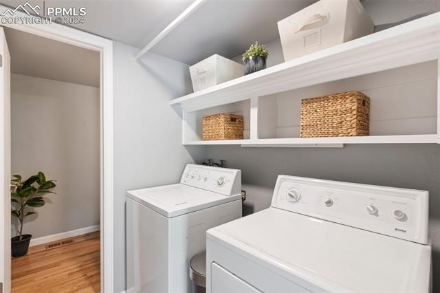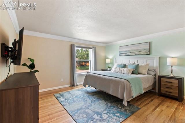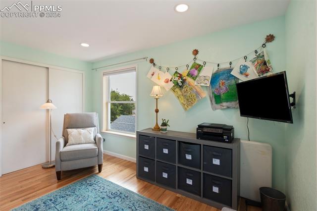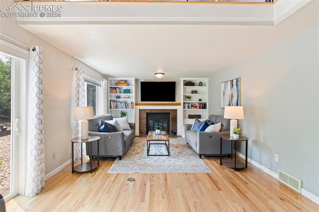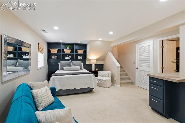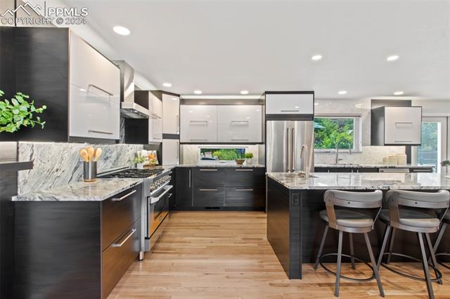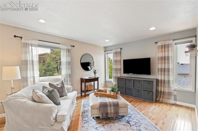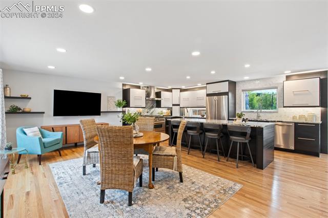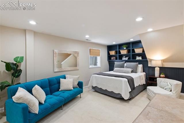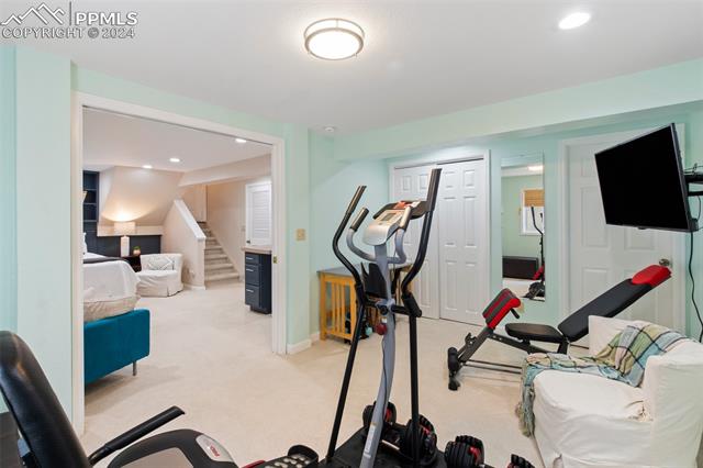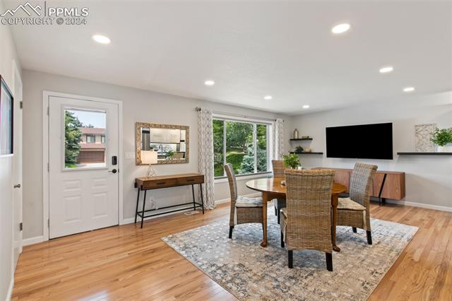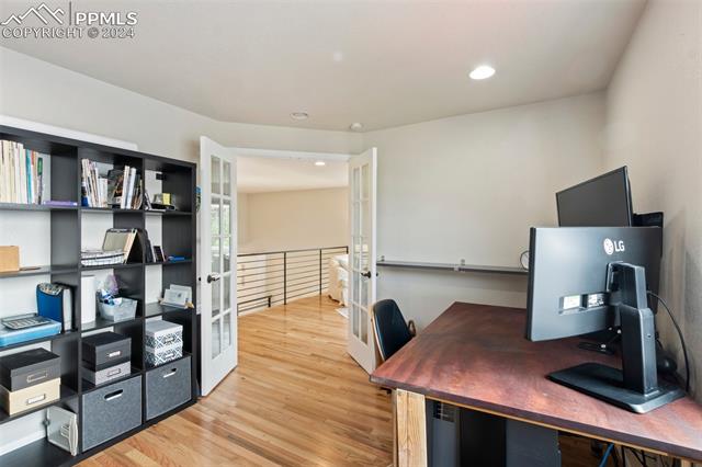 Welcome to this remarkable, updated Briargate home in D20 where function meets modern style and elegance. As you enter, you'll notice the completely remodeled custom kitchen boasting a 9 foot island with prep sink, sleek custom cabinets, granite countertop and backsplash, under and above-cabinet lighting, 48 inch gas range, and stainless steel appliances. With high attention to detail given to this home, you'll notice the beautiful hardwood floors and custom metal railing that exude warmth and sophistication. The living room, bright with abundant natural light, features a fireplace, built-in shelving and walkout to a patio garden area. The upper level features a cozy loft overlooking the kitchen and living room and offers magnificent views of Pikes Peak. You will also find an office with French doors that could be a bedroom, a sizeable primary suite with upgraded bathroom featuring a double vanity, walk-in shower and custom tile work, and an additional bedroom and full bathroom. The basement is a versatile retreat, featuring a separate suite with a wet bar and compact fridge, a sitting room/exercise room, large storage closet and a 3/4 bathroom, providing an ideal space for guests, a home gym, or a private relaxation area. Outside prepare to be delighted at the expansive composite deck with custom railing, fenced in yard, garden area and mature trees. Equipped with many new amenities, including a newer A/C and furnace, newer windows, an upgraded electrical panel, a new roof in 2024, and a new shed built in 2023 with incredible storage that beautifully complements the home's architecture. Additionally, the driveway features newer concrete and the garage is insulated, drywalled, and wired for a workshop with a 220 connection and a new garage door. There is an RV pad directly next to the home with a 50 amp connection. Plus, no HOA and the location provides easy commute to I-25 or Powers, and is close to schools, parks, military bases, shopping and entertainment.
